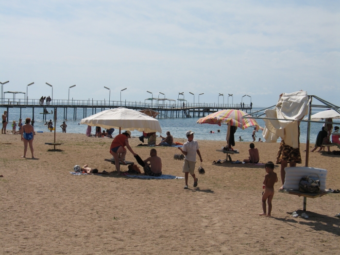 Пляж песчанный .на пляже зонтики лежаки ,прокат катамаранов,водные аттракционы.Имеется самый длинный пирс на всем побережье! На территории пансионата имеется своя минеральная и радоновая скважина-к услугам отдыхающих лечебный душ.Есть дискотека, кафе-бар,летний кинотеатр,сауна,бильярд,настольный теннис,есть детская игровая площадка,компьютерный зал,международная связь, массажный и медицинский кабинет.Питание улучшенное 3-х разовое европейская и восточная кухня.